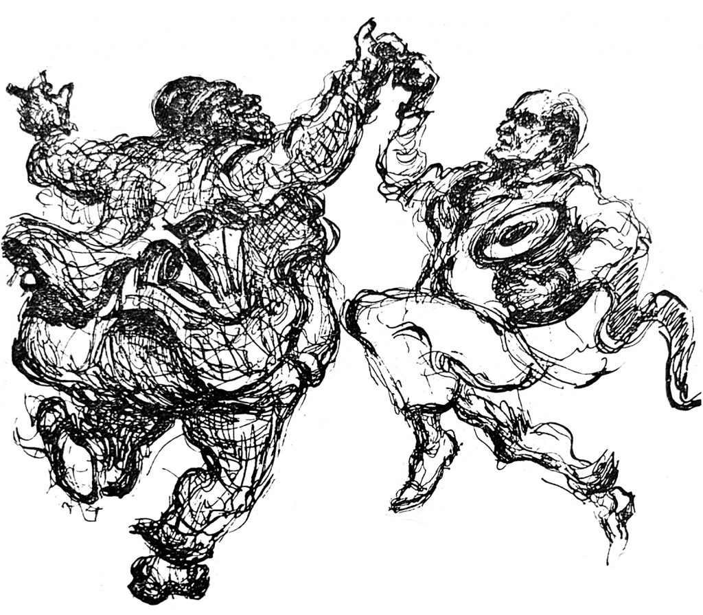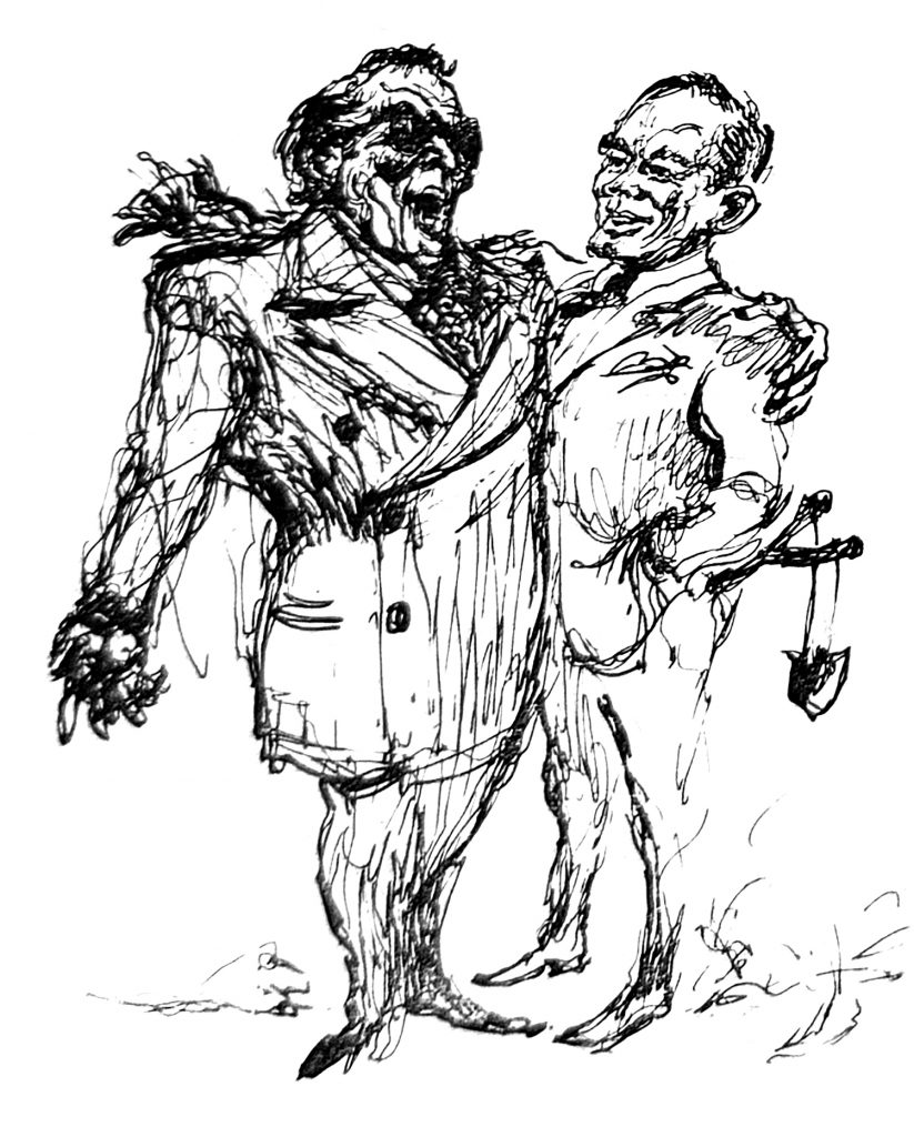 This drawing of “Big Builder” and Arnold Bergier reflects back to Joseph Papin’s drawing five months earlier on July 30, 1959 (below).